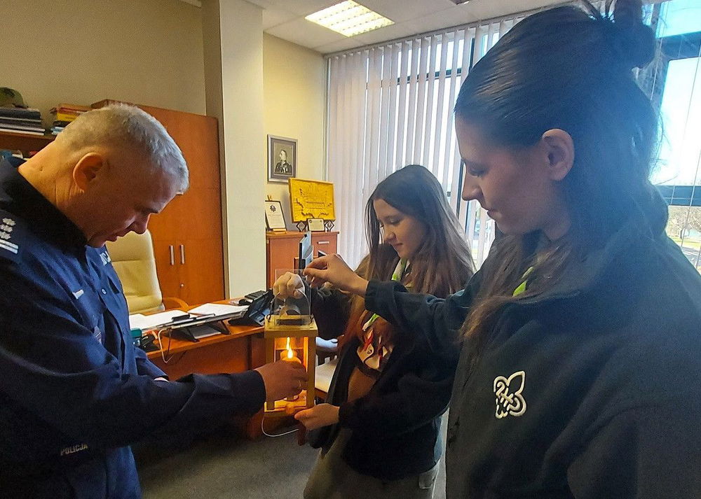 Harcerze z Hufca ZHP w Zduńskiej Woli tradycyjnie przekazali Betlejemskie Światełko Pokoju funkcjonariuszom Komendy Powiatowej Policji w Zduńskiej Woli. Symboliczny płomień odebrał inspektor Robert Krawczyk Komendant Powiatowy Policji w Zduńskiej Woli. Przekazanie odbyło się 19 grudnia 2025 roku.